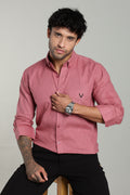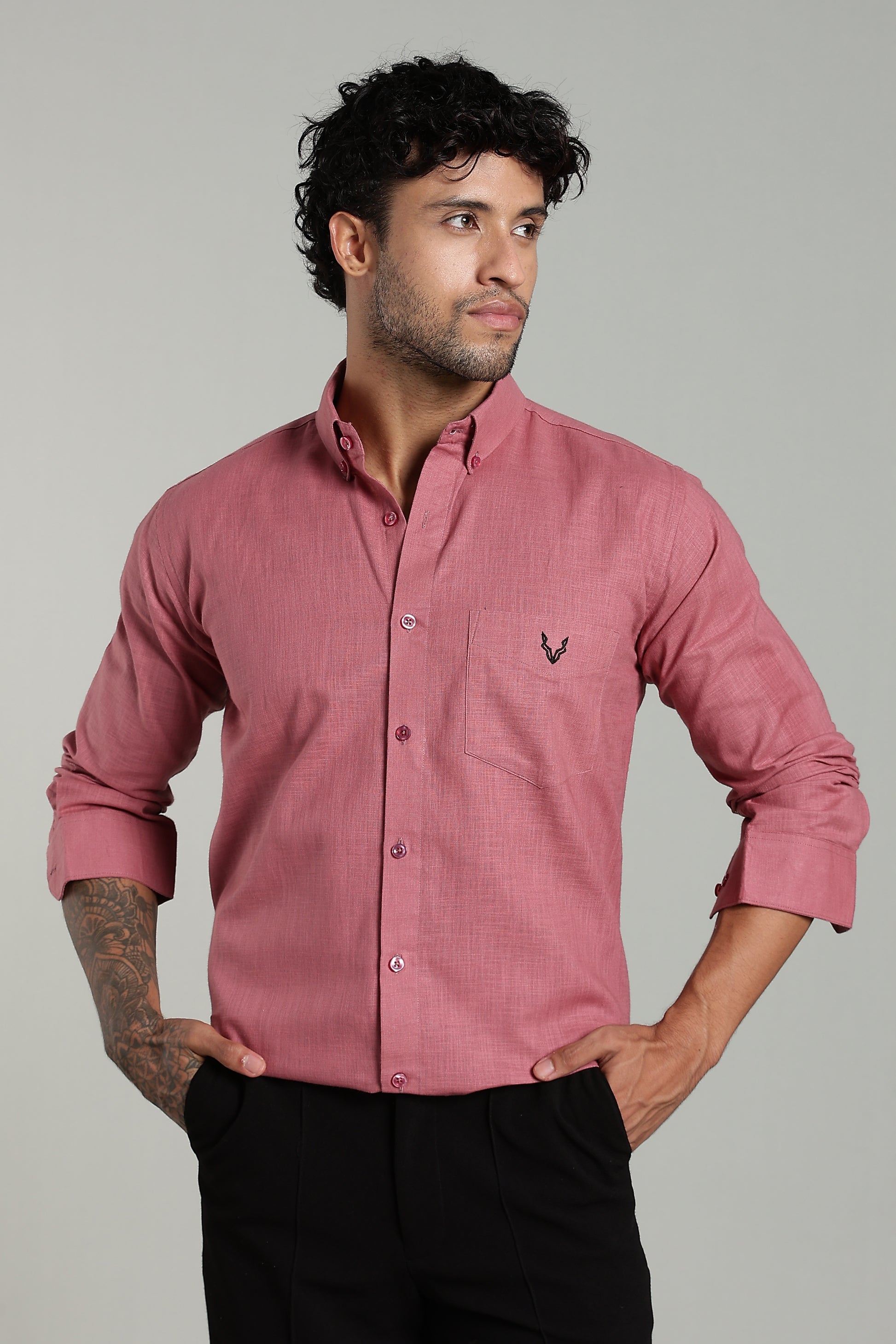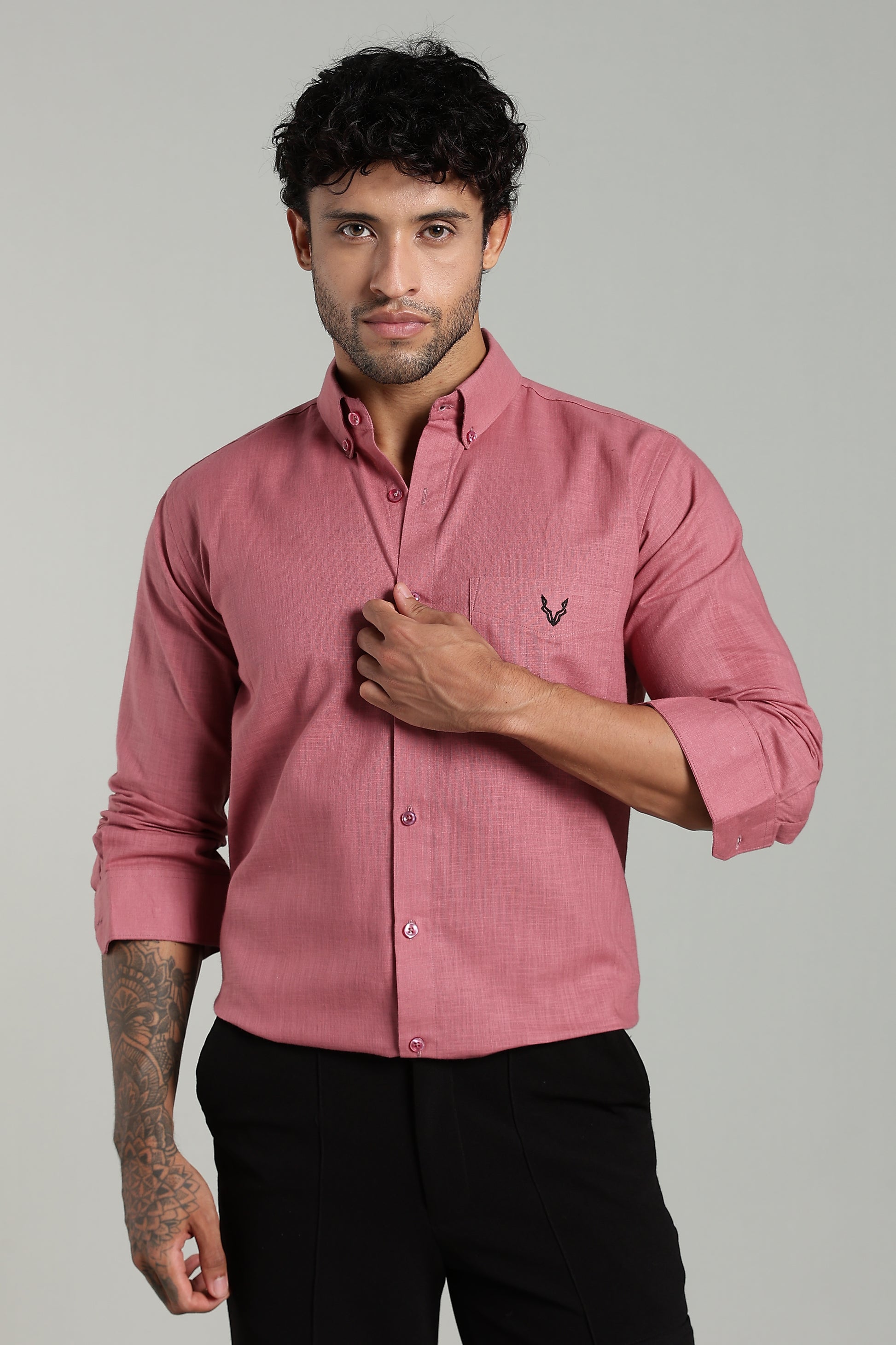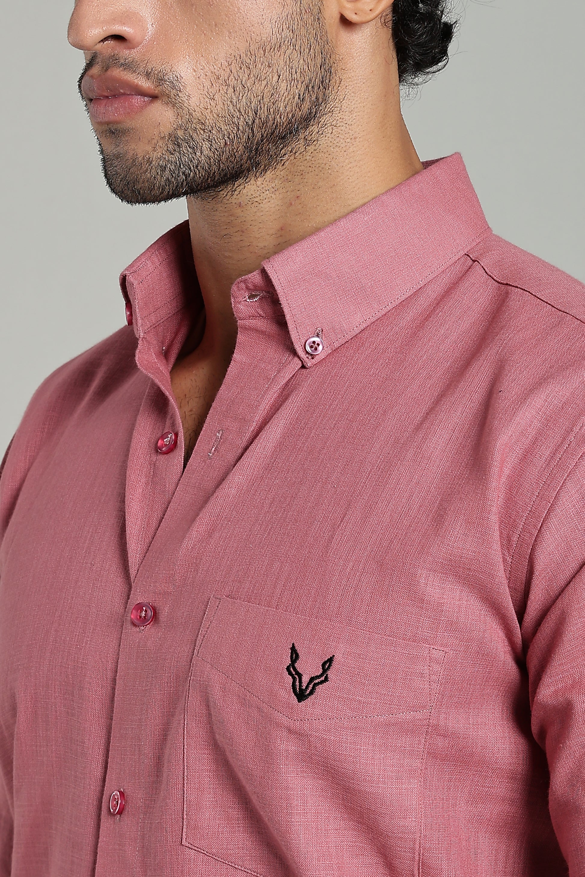 Elevate your formal style with this light sky-blue textured shirt, crafted from a premium cotton-linen blend. Designed for comfort and sophistication, it features a button-down collar, full sleeves, and a subtle chest logo for a refined touch.