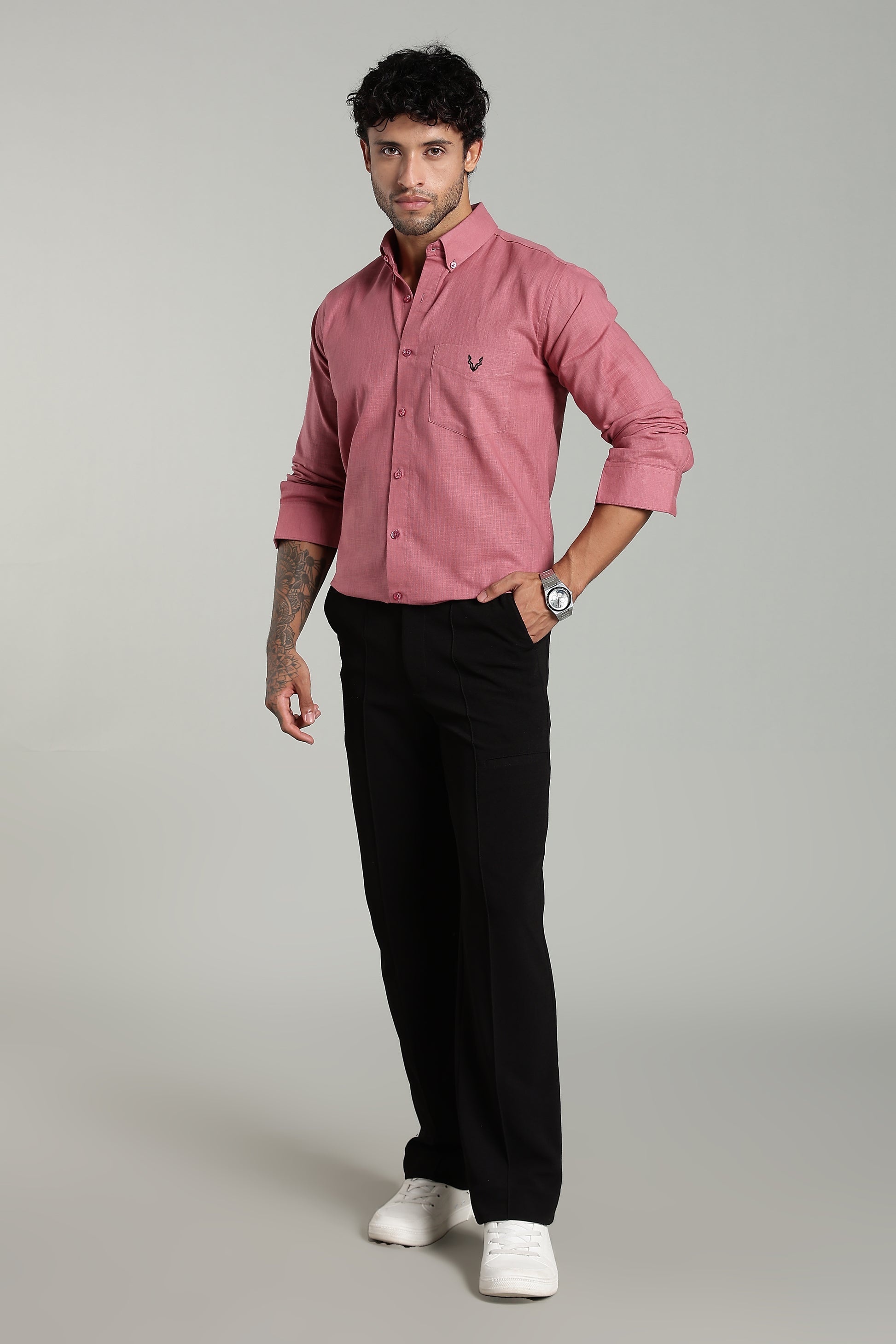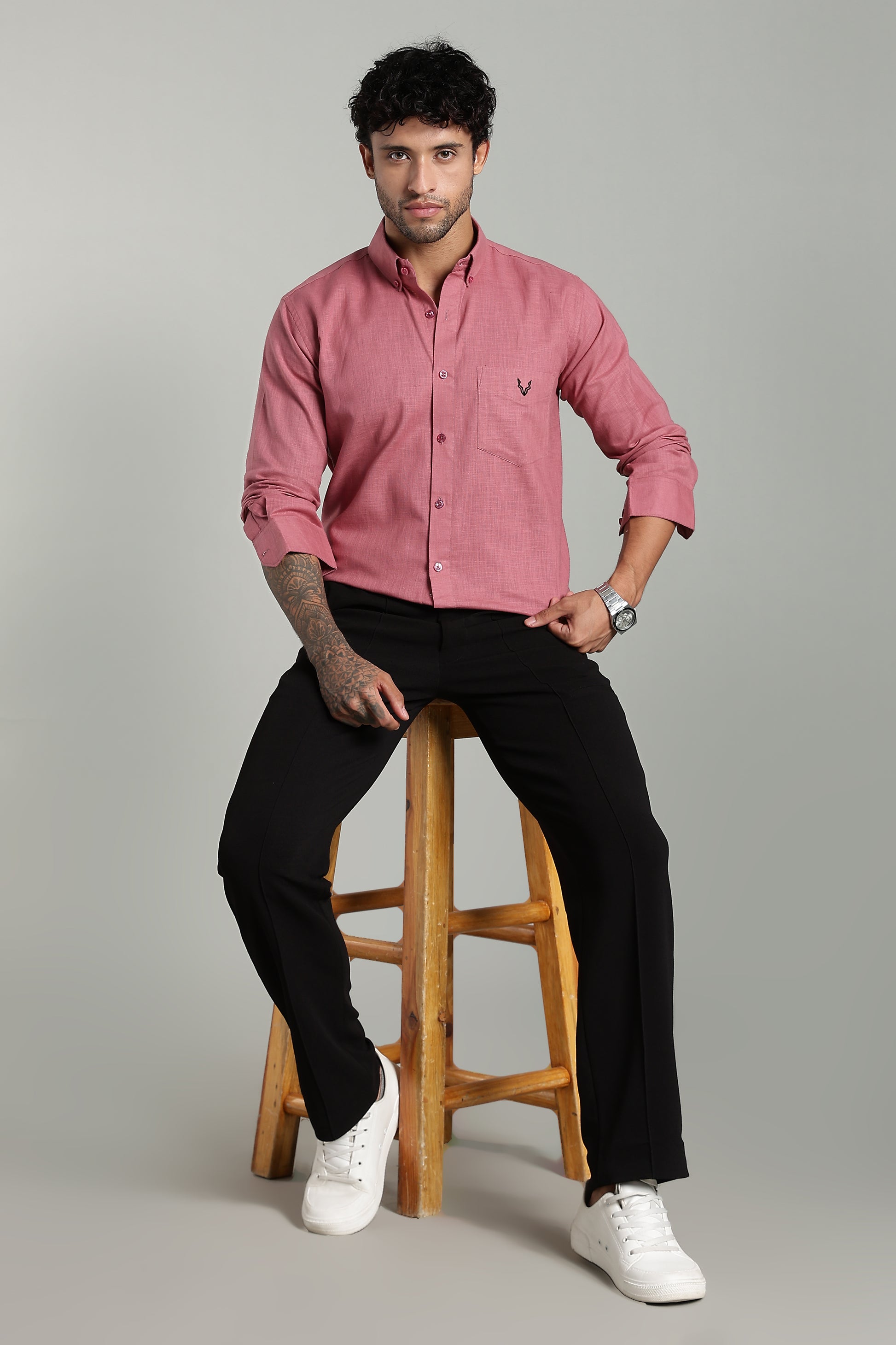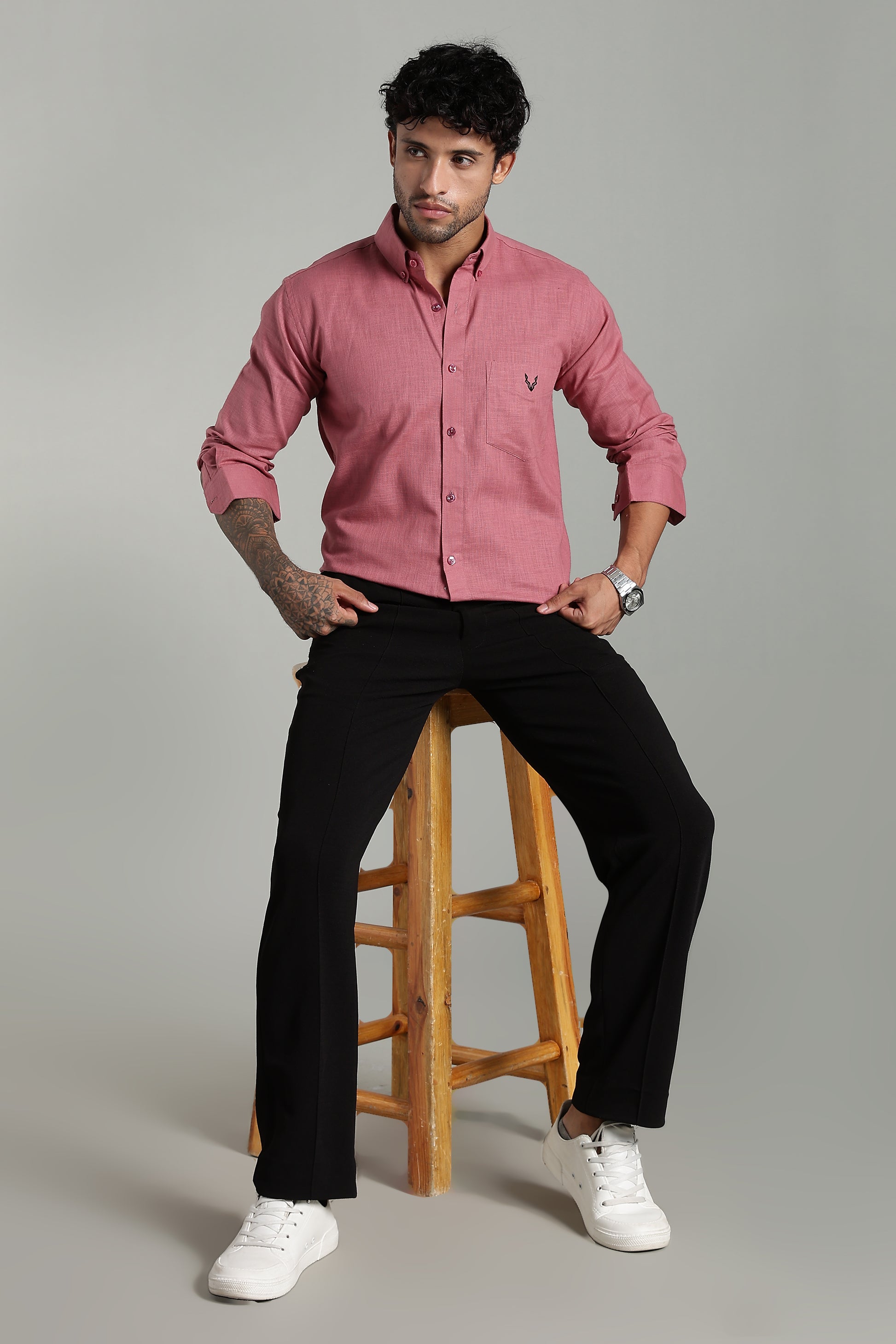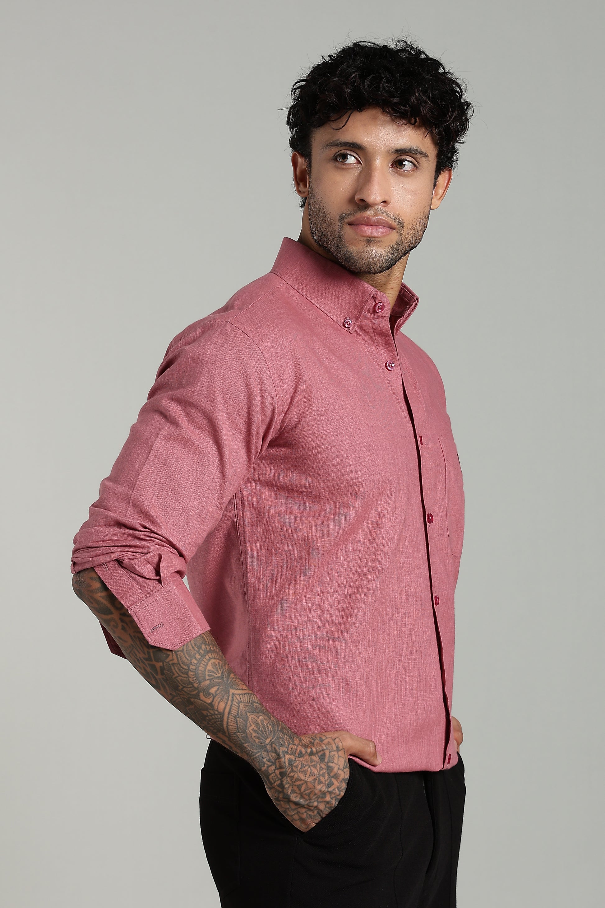 Elevate your formal style with this light sky-blue textured shirt, crafted from a premium cotton-linen blend. Designed for comfort and sophistication, it features a button-down collar, full sleeves, and a subtle chest logo for a refined touch.
