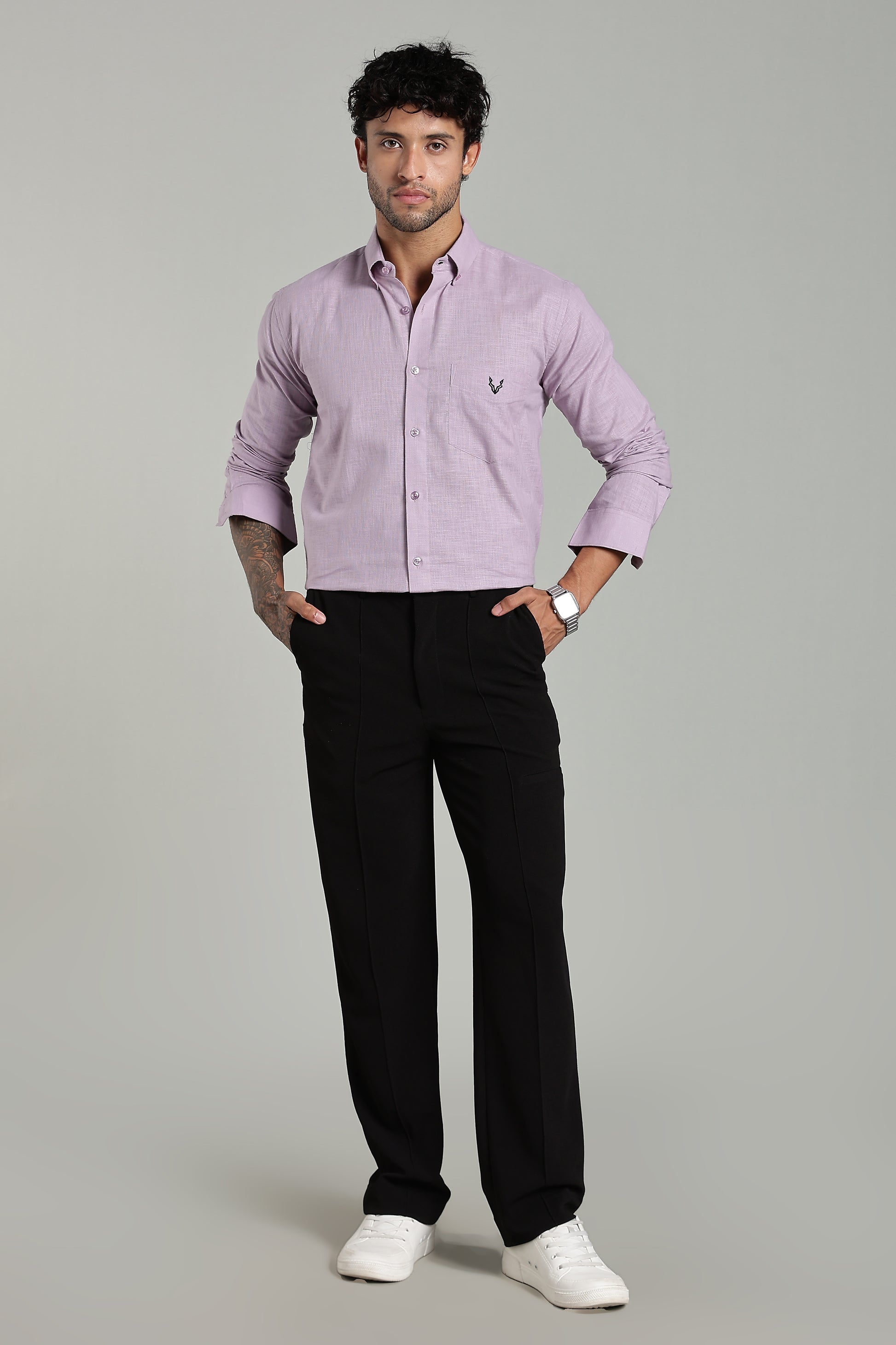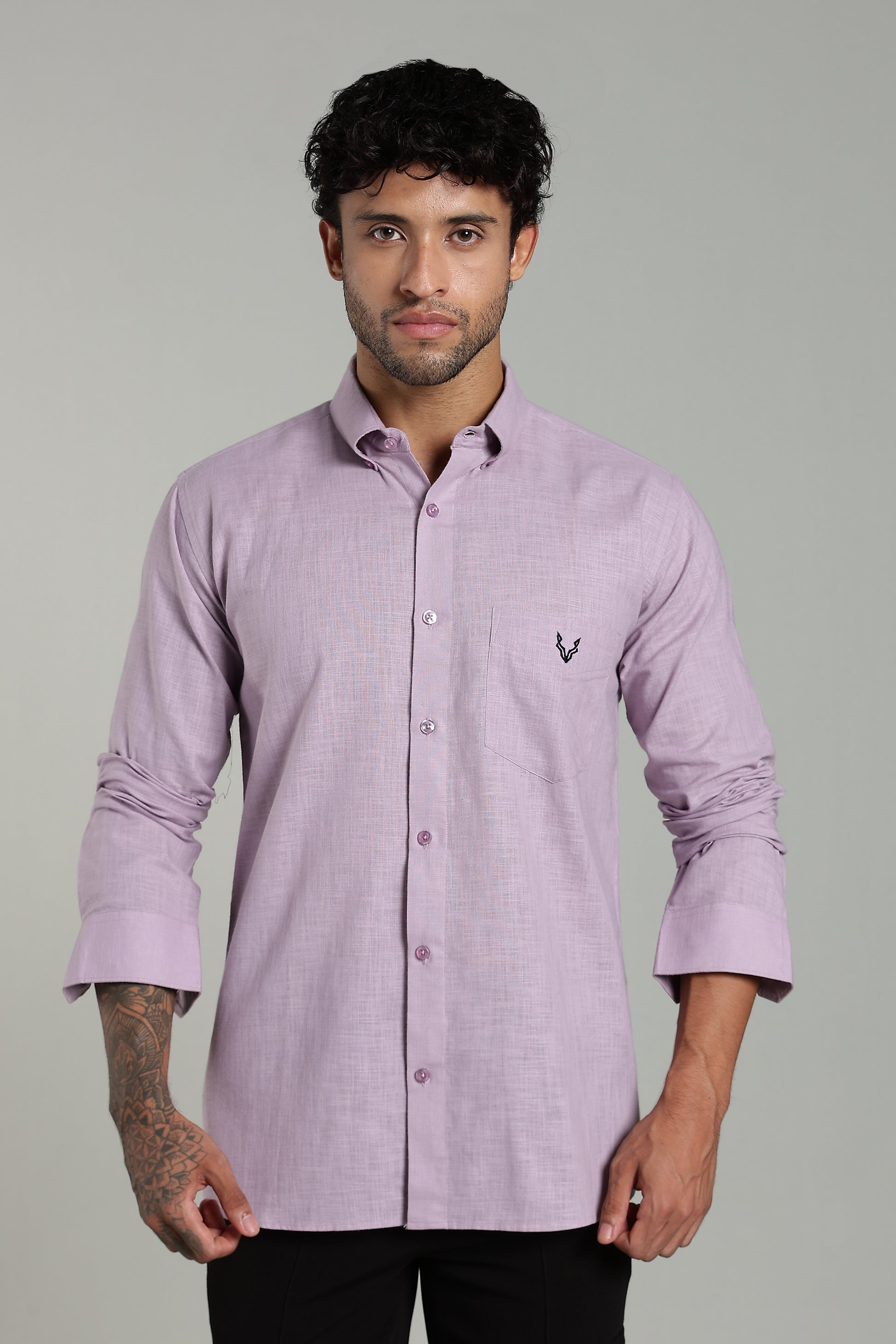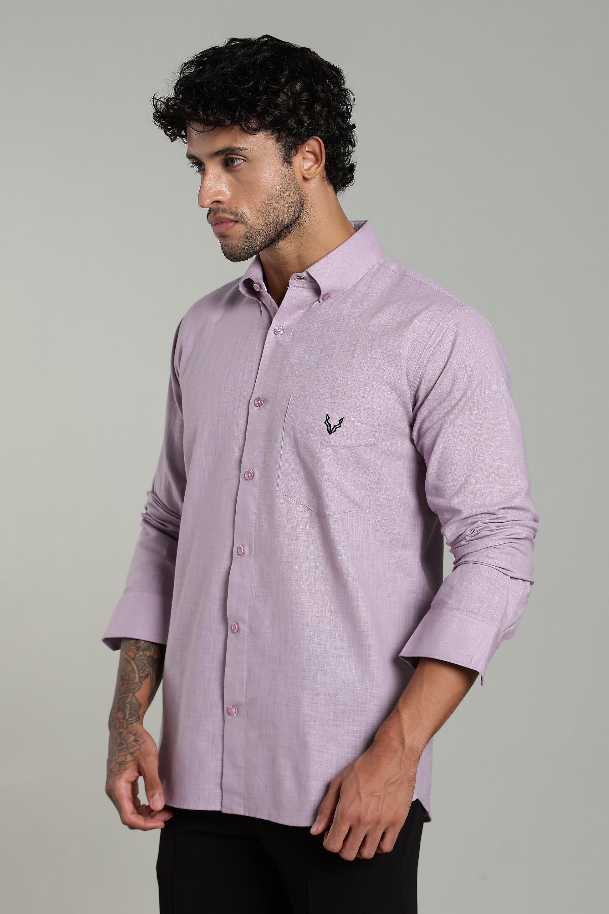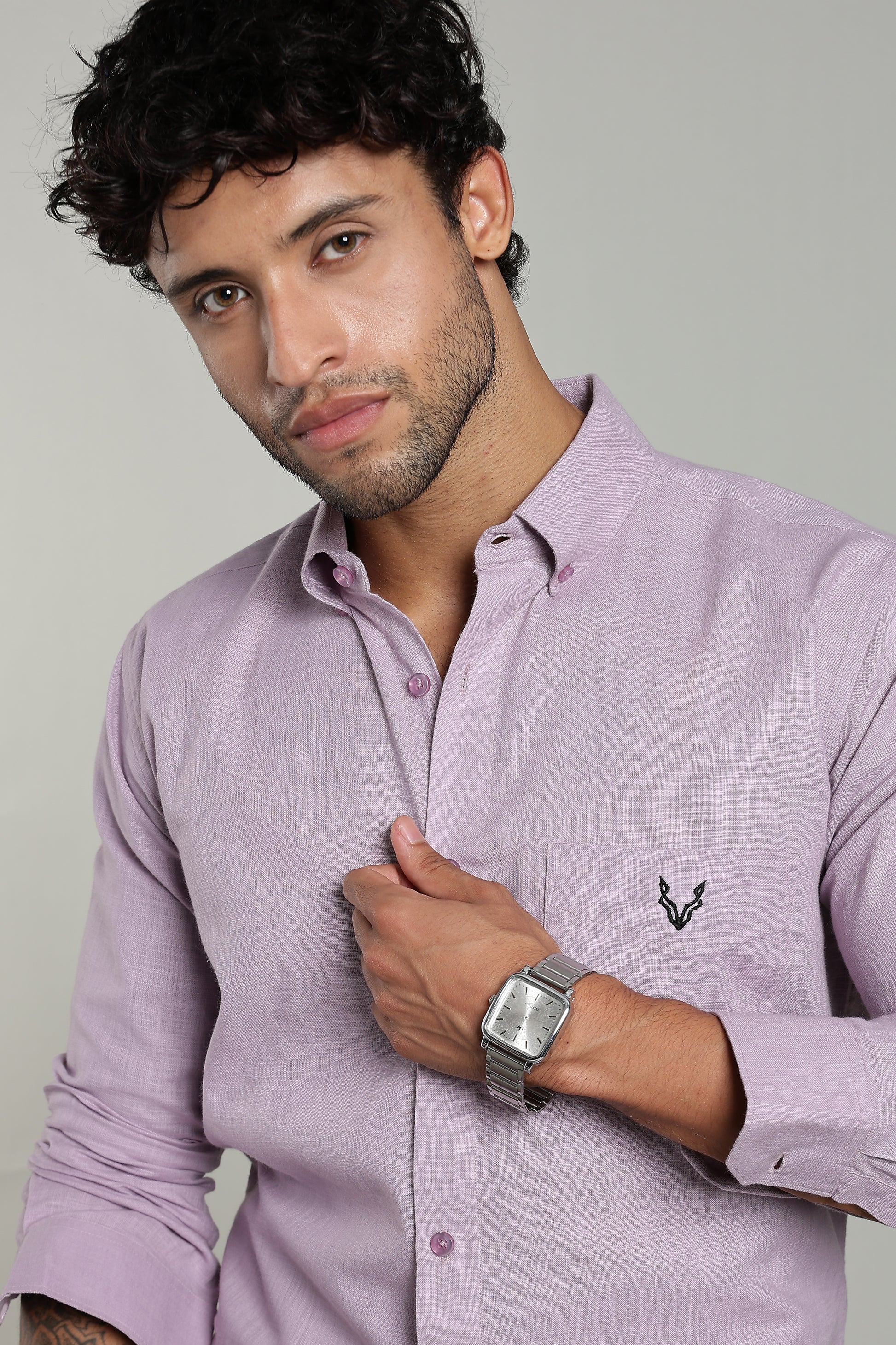Elevate your formal style with this light sky-blue textured shirt, crafted from a premium cotton-linen blend. Designed for comfort and sophistication, it features a button-down collar, full sleeves, and a subtle chest logo for a refined touch.