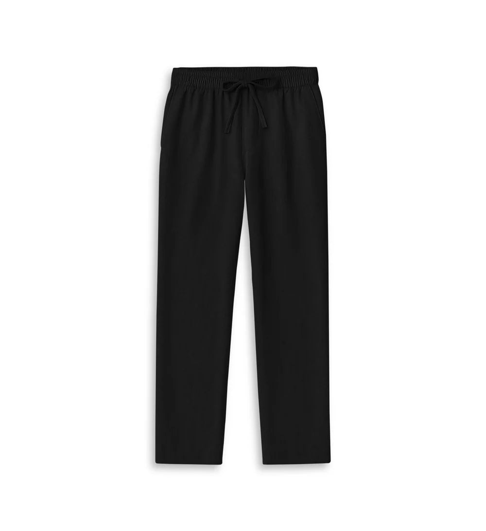 "Lightweight co-linn trousers with a relaxed fit and drawstring waist—perfect for effortless summer style."
